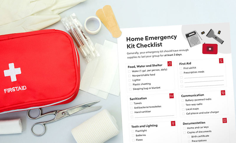 Creating an effective home emergency kit begins with storage. You need a large, watertight container to keep the natural elements out of your emergency supplies. Regularly check your supply levels and expiration dates and restock as needed. As a general rule, keep enough food, water and supplies for each person in your household to survive for at least 3 days.